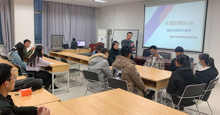 生涯发展中心主持举办的“生涯团辅面对面”模拟求职技巧辅导活动在特教楼B1006室举办。本次交流会邀请学院2019级辅导员王栋老师担任主讲,学院三十余名学生参加了活动。