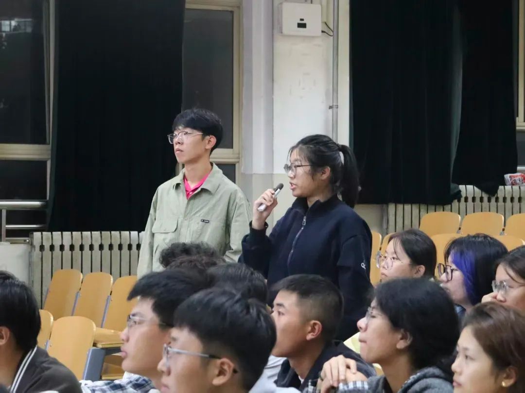 在提问互动环节,新生们踊跃举手,主讲人耐心答疑解惑。参与互动的新生还收获了“蓝信封”专属礼品。活动结束后,大家领取了童声纪念卡并打卡留念,现场氛围热烈又温馨。