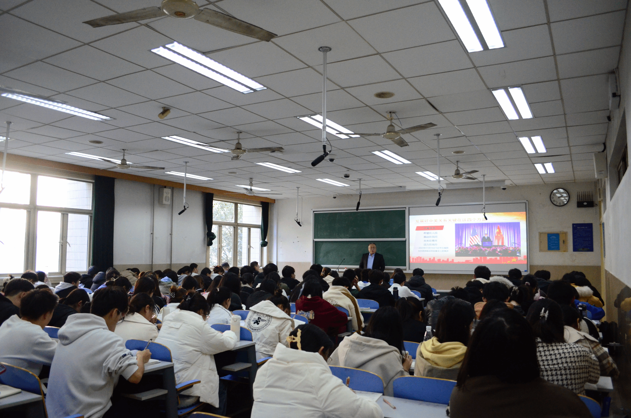 生物2201班、生药2301班、生药2302班学生讲授专题《形式与政策》课,学院党政领导班子成员与学生们一同参加了本次课程。