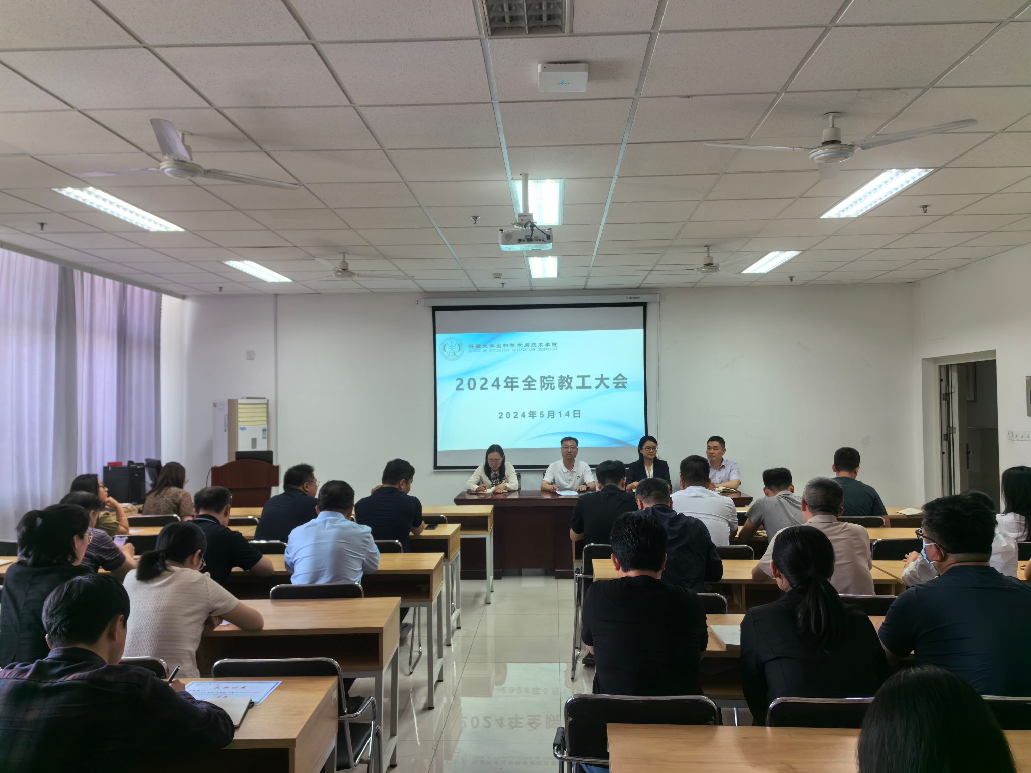 在特教楼B1010会议室召开全院教职工大会,全面部署本科教育教学评估、实验室安全管理、科研、研究生教育、学生就业工作推进等方面工作。会议由党委书记史国普主持。