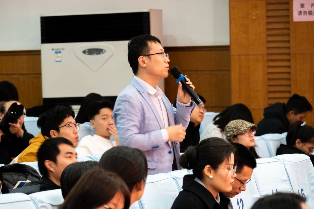 在报告互动阶段,朱永官院士与在场的师生进行了学术探讨和交流,师生踊跃提问,现场气氛活跃。本次学术报告展现了国际科学前沿热点,富有学术思辨,为学校相关专业领域师生的学术科研提供了全新视角与启示。
