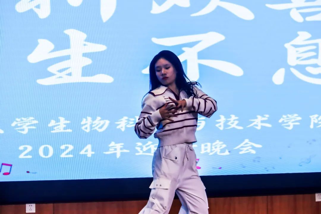 药学2403班同学带来的舞蹈《偶像万万岁》,在音乐律动里展现出了青春的炽热和激情,每一个跳跃、旋转,都展现出了青春的蓬勃力量。