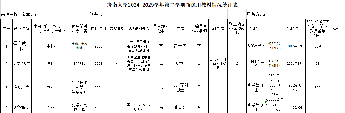 教材管理办法》(济大校字〔2021〕86号)文件精神,经学院教研室、系及学院教材工作领导小组审核,相关教材符合国家教材委员会及省教育厅相关文件要求,同意选用。